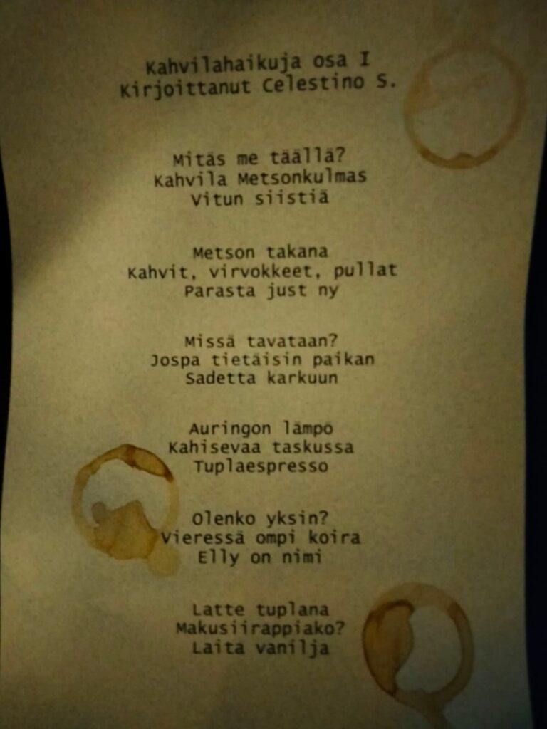 Kahvilan väen tilaisuuden kunniaksi kirjoittamia haikuja