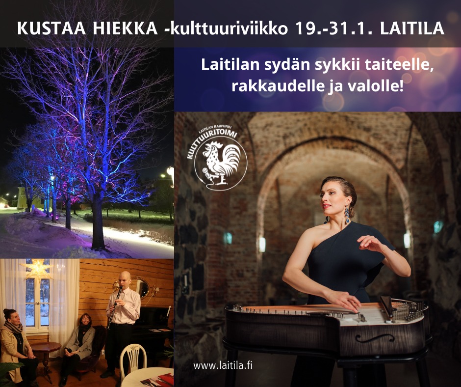Laitilan kaupungin perinteinen Kustaa Hiekan kulttuuriviikko kutsui jälleen kaupunkilaiset ja vierailijat kokemaan taiteen, musiikin ja kulttuurin monimuotoisuuden 19.–31.1.2025. Tapahtuman teemana korostuivat rakkaus, valo ja yhteisöllisyys, jotka rakentavat sillan Kustaa Hiekan sanomaan: ”Maailma on kiinnostava, avara ja kaunis.”